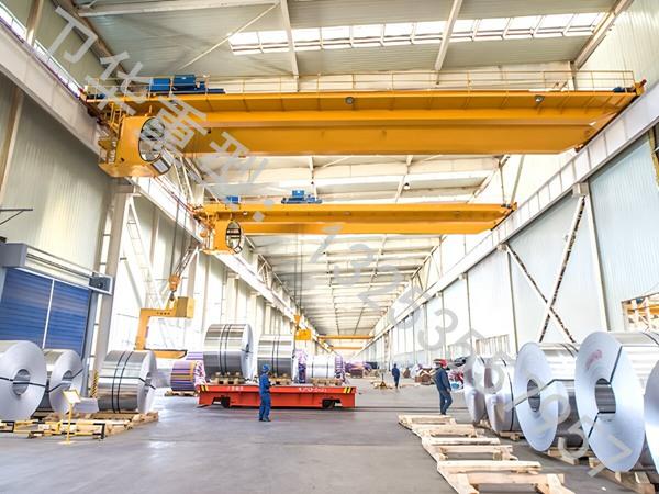 大车运行:整个桥架可以沿着厂房长度方向(纵向)在轨道上移动。