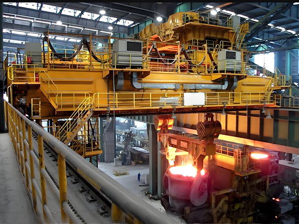 冶金专用双梁起重机专为冶金行业定制,针对炼钢、轧钢、铸造等高温、高冲击、重载的工况特点,进行了特殊结构设计,具备耐高温、抗冲击、双重制动、防过载的优势,工作级别通常达到A7~A8,可用于钢卷、板坯、钢水包等高温、重型物料的搬运,是冶金生产线上不可或缺的核心设备。