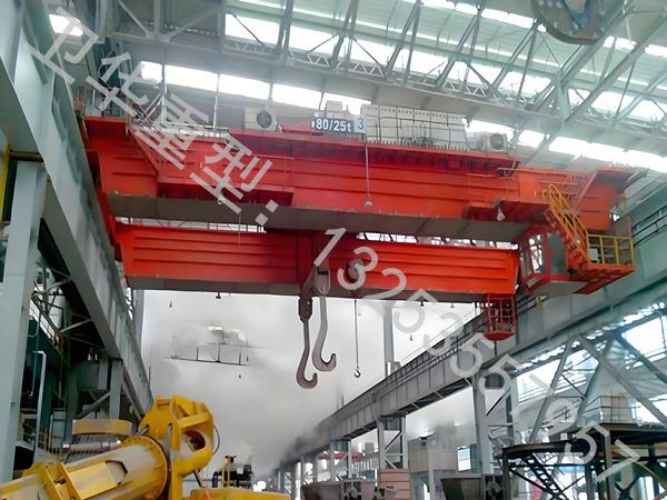用途:吊运钢水包、铁水包、渣罐,完成兑铁、出钢、连铸、倒渣。
